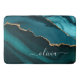 Teal Aqua Blue Green Agate Geode Gold Monogram Bath Mat