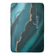Teal Aqua Blue Green and Gold Foil Agate Geode Monogram Beautiful Elegant Script Name Bathroom Bath Mat. This makes the perfect sweet 16, 13th, 15th, 16th, 18th, 21st, 30th, 40th, 50th, 60th, 70th, 80th, 90th, 100th birthday, wedding, bridal shower, anniversary, baby shower, graduation or bachelorette party gift for someone decorating her room in modern trendy chic style.