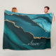 Teal Aqua Blue Green Agate Geode Gold Monogram Fleece Blanket