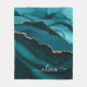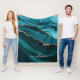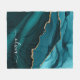 Teal Aqua Blue Green Agate Geode Gold Monogram Fleece Blanket