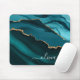 Teal Aqua Blue Green Agate Geode Gold Monogram Mouse Mat