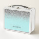 Teal Aqua Blue Silver Glitter Girly Monogram Name Metal Lunch Box