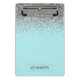Teal Aqua Blue Silver Glitter Girly Monogram Name Mini Clipboard