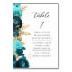 Teal Aqua Gold Floral Modern Script Wedding Table Number