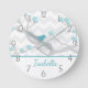 Teal Aqua Gray Bird on Branch Nursery Wall Clock