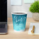 Loose abstract teal aqua green-blue brush art wedding paper cups. A simple modern contemporary art design ideal for weddings or anniversary events in pretty shades of aqua teal brushed through to white. © Original watercolor art and design by Sarah Trett www.sarahtrett.com for www.mylittleedenweddings.com