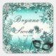 Teal Aqua Green Winter Masquerade & Snowflakes Square Sticker