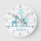 Teal Aqua Grey Giraffe Nursery Wall Clock