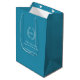 Teal aqua silver leaf oval wreath monogram wedding medium gift bag
