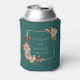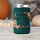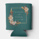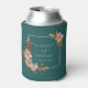 Teal Autumn Leaves Can Cooler. Celebrate your love with a cosy, seasonal flair using this autumn leaves can cooler. Adorned with warm watercolor foliage in terracotta, burnt orange, and copper shades, complemented by soft beige florals, this design captures the essence of a fall celebration. Whether handed out at cocktail hour or tucked into welcome bags, it’s a thoughtful and practical favour that brings your theme full circle. Make it personal and let your guests sip in style.