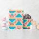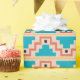 A colourful geometric Mexican Aztec/Inca pattern design in teal blue, cream and adobe brown.