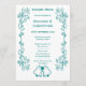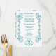 Wedding menu bells design. Customise this teal coloured wedding menu with your wedding details. Should you require any help with customising then contact us through the link on this page. Teal coloured bells design personalised wedding menu
