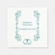 Wedding reception napkin bells design. Customise this teal coloured wedding reception napkin with your wedding details. Should you require any help with customising then contact us through the link on this page. Teal coloured bells design personalised wedding reception napkin