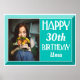 Teal Beveled Art Deco Birthday Photo Poster