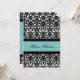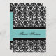 Custom 16th Birthday party invitations in elegant black and turquoise blue classic floral damask pattern. Add your name and party details for a unique and stylish sweet 16 birthday party invitation.