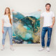 Teal Black Gold Alcohol Ink Fluid Artabstract,art, Fleece Blanket