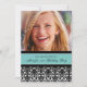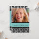 Custom Photo 21st Birthday party invitations in elegant turquoise blue, black and white classic floral damask pattern. Add your name, photo, and party details for a unique and stylish 21st birthday party invitation.
