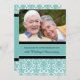 Custom photo 50th wedding anniversary party invitation card in elegant turquoise blue, black and white classic floral damask pattern, delicate and modern. Customisable with your party details and your own photo.