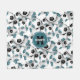 teal black soccer balls pattern monogrammed fleece blanket