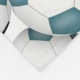 This team colours soccer themed fleece blanket features a pattern of varied size soccer balls turned every which way on a customisable white background - some of the soccer balls' typically black panels have been recolored teal - customise with soccer player's name and monogram or jersey number - by katz_d_zynes