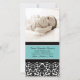 Baby Shower thank you photo cards in elegant and modern turquoise blue, black and white with delicate floral damask vintage pattern. A perfect way to thank friends and family for baby shower gifts and to share your baby photos. Available in many matching product for your shower.