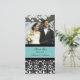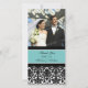 Wedding thank you photo cards in elegant and modern turquoise blue, black and white with delicate floral damask pattern. A perfect way to thank friends and family for wedding gifts and to share your wedding photos. Available in matching postage, and many other products for your wedding.