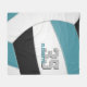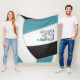 This cool volleyball themed fleece blanket features the realistic image of an abstractly oversized teal, black and white volleyball that covers the entire blanket - personalise with the athlete's name and jersey number, which are positioned off centre on the blanket - by katz_d_zynes