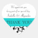 Teal, Black Wedding Favour Thank You Message Heart Sticker