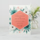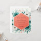 A romantic blend of deep teal and soft coral blossoms creates an enchanting atmosphere. Delicate white blooms are interspersed with lush foliage, evoking a sophisticated and timeless feel for your special day.
