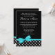 Teal Blue and Black Polka Dots Bow Bat Mitzvah Invitation