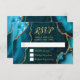 Teal Blue and Gold Agate Marble RSVP Card