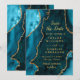 Teal Blue and Gold Agate Marble Save The Date Invitation