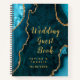 This elegant and glamourous wedding guest book features a teal blue agate marble background with faux gold glitter accents. The text combines handwritten script and modern sans serif fonts for a classy and sophisticated look. This will be perfect for autumn fall and winter weddings.