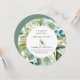 Teal Blue and Gold Botanical Round Wedding Invitation
