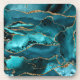 Teal blue and gold glitter agate beverage coaster. Modern and elegant design.
