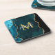 This coaster features an elegant and glamourous agate marble background with geode gemstone detailing and faux gold glitter accents. The monogram combines handwritten script and modern sans serif fonts for a classy and sophisticated look. This will make the ideal gift as it can be customised with a name and initial. The deep teal blue hues make it perfect for autumn fall and winter.