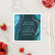 This elegant and glamourous wedding napkin features a teal blue agate marble background with faux silver glitter accents. The text combines handwritten script and modern sans serif fonts for a classy and sophisticated look. This will be perfect for autumn fall and winter weddings.