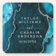 This elegant and glamourous wedding coaster features a teal blue agate marble background with faux silver glitter accents. The text combines handwritten script and modern sans serif fonts for a classy and sophisticated look. This will be perfect for autumn fall and winter weddings.