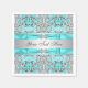 Teal blue and silver napkins with elegant teal blue bows with diamonds on a beautiful teal blue and silver lace background. You can add text in the font style of your choice, or delete the text.