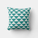 Teal Blue and White Geometric Triangular Pattern Cushion