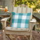 Pillow design features a casual gingham plaid / check pattern that is perfect for summertime! Note, you can customise the teal green blue background colour to coordinate with your outdoor decor.