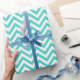 Teal Blue and White Zigzag Stripes Chevron Pattern Wrapping Paper