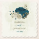 teal blue beige floral botanical wedding paper coaster