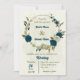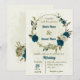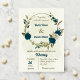 Beautiful romantic wedding invitations featuring teal blue and beige flowers and some leaves .