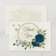 Beautiful romantic wedding thank you card featuring teal blue and beige flowers and some leaves .