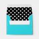 A girly teal blue envelope with a black and white polka dots pattern on the inside.