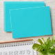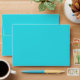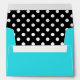 A girly teal blue envelope with a black and white polka dots pattern on the inside.