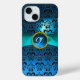 TEAL BLUE BLACK DAMASK GEMSTONE MONOGRAM Case-Mate iPhone CASE