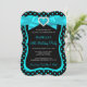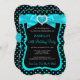 Teal Blue Bow Heart Black Polka Dots Birthday Party. Teen Girls and Womens sophisticated Invitation with a bow with jewel heart. PLEASE NOTE all flat images! They Do NOT have real Bows, Diamonds or Jewels!!