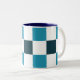 Teal Blue Checkerboard Two-Tone Coffee Mug